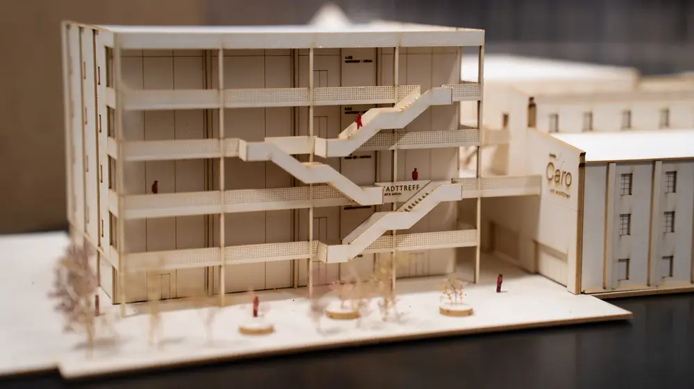 Unter dem Motto „sam meets Caro“ präsentierten Studierende der Hochschule RheinMain (HSRM) ihre Bachelor- und Master-Thesisarbeiten im Stadtlabor der HSRM im Luisenforum Wiesbaden. Im Zentrum der Ausstellung standen Ansätze des Bauens mit und im Bestand – ein inhaltlicher Schwerpunkt, der vor allem den Master-Studiengang Architektur prägt.