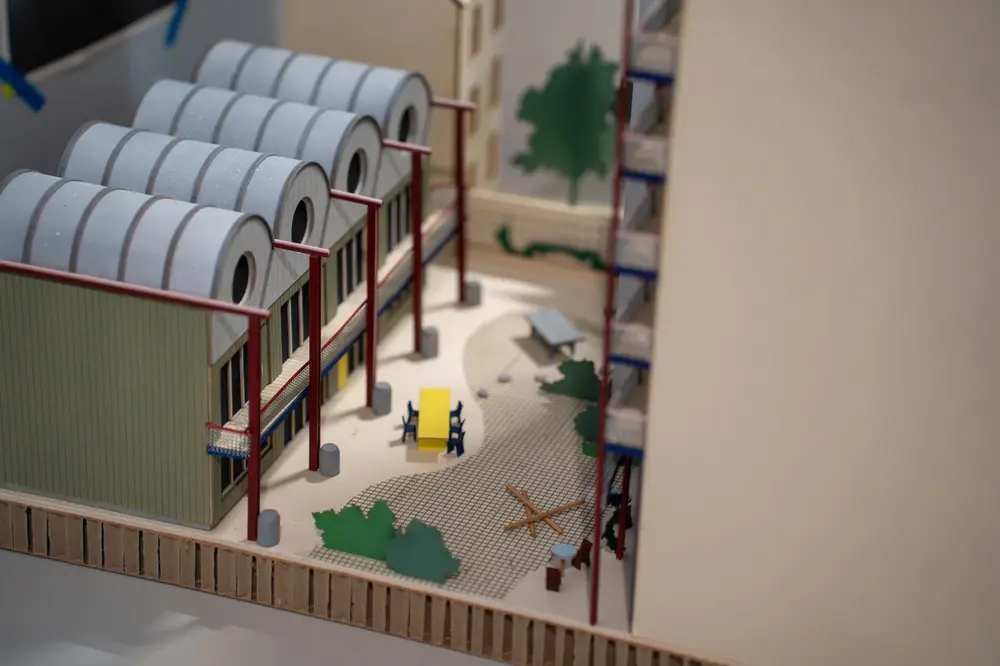 Die Master-Thesen wurden von Prof. Daniel Seiberts gemeinsam mit Prof. Isabella Leber, Prof. Volker Kleinekort und Prof. Karin Damrau betreut. Ausgangspunkt der Aufgabe war die Umwidmung des Franck-Areals in Ludwigsburg, wo bis 2018 Caro-Kaffee produziert wurde. Das Areal prägt die Stadtgeschichte maßgeblich und liegt zentral – eine besondere Herausforderung für die Masterstudierenden. Im Fokus stand die Revitalisierung zweier ehemaliger Industriebauten mit unterschiedlichen Bauweisen, die funktional und gestalterisch miteinander verbunden werden sollten.