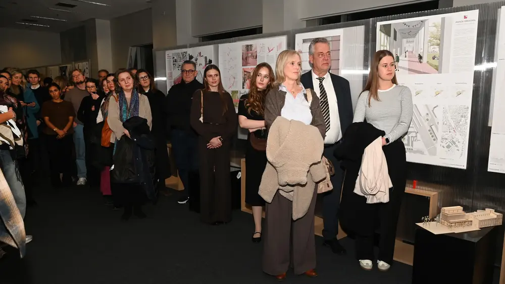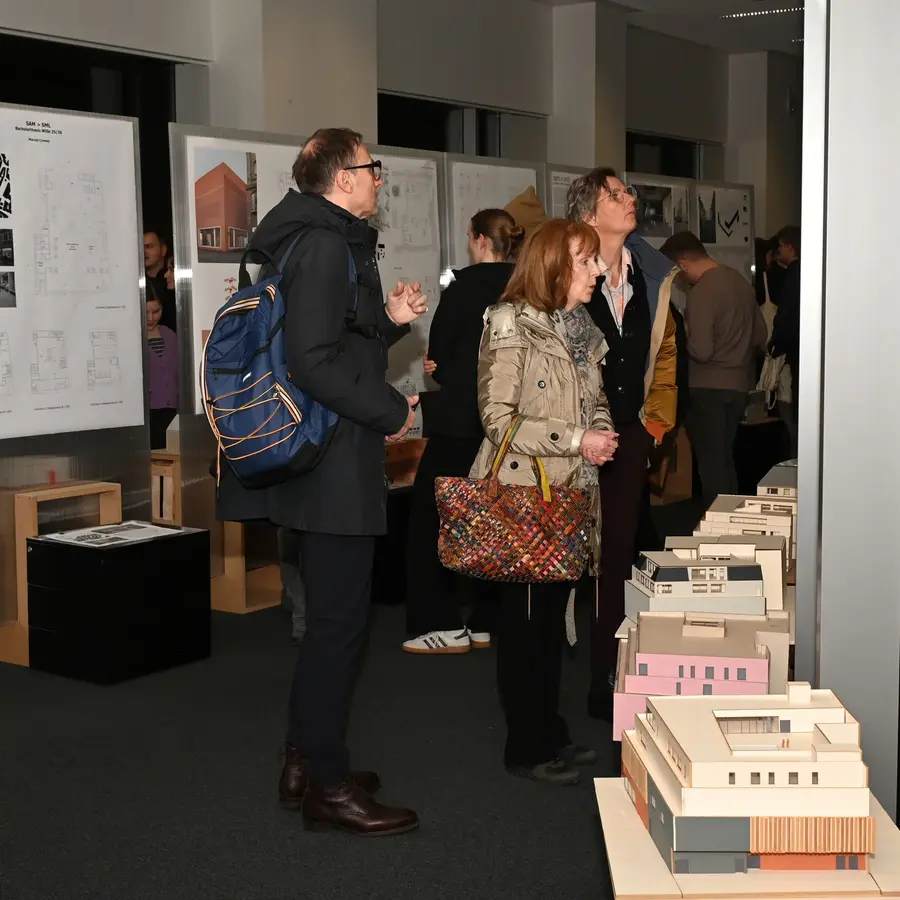 „Bauen mit Bestand ist eine Herausforderung unserer Zeit“, so Prof. Daniel Seiberts. Die Fragen dahinter: Wie lassen sich bestehende Ressourcen intelligent nutzen? Wie können Eingriffe ressourcenschonend erfolgen? Die präsentierten Entwürfe zeigten überzeugende Strategien zur Transformation industrieller Bausubstanz in zukunftsfähige Kultur- und Arbeitsorte. Mit dem im Studium erworbenen Rüstzeug seien die Absolvent:innen bestens vorbereitet für den Beruf als Architekt:innen.