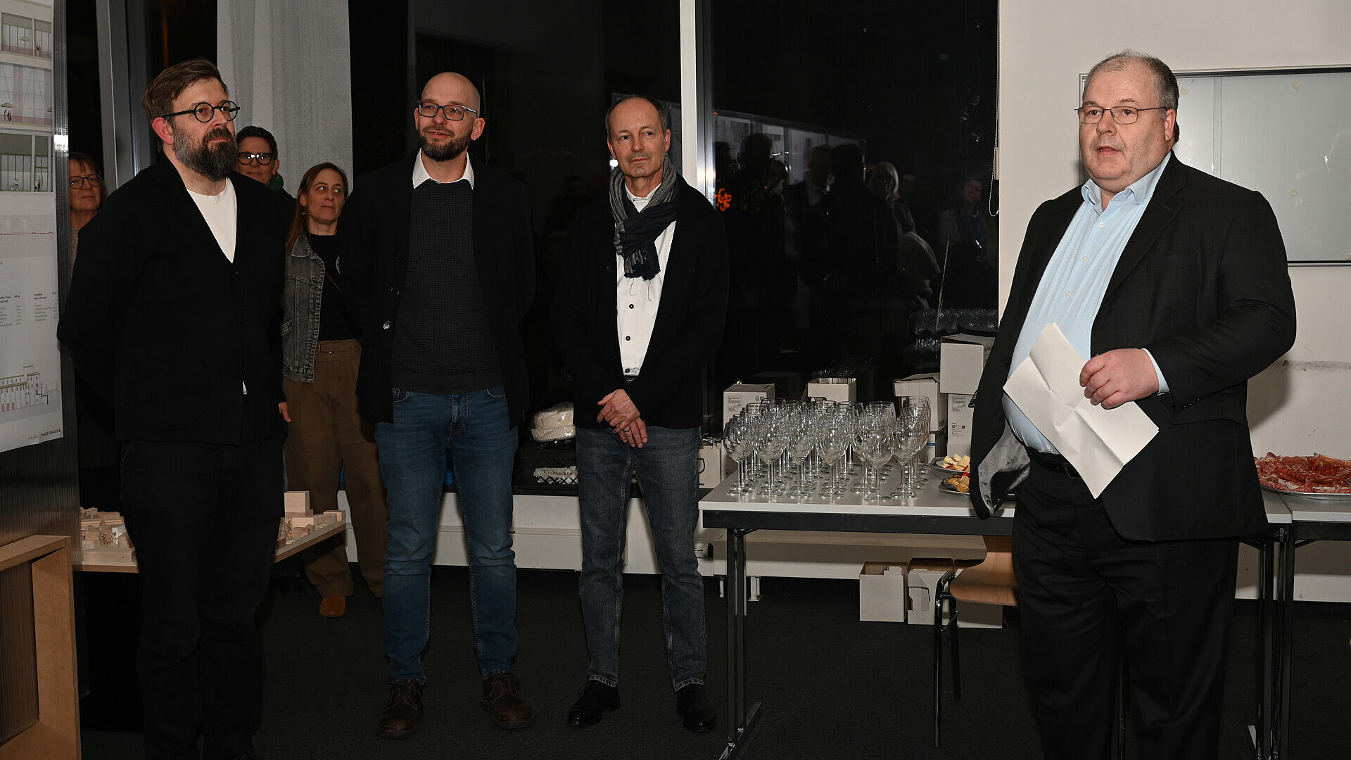 Der Prodekan des Fachbereichs, Prof. Dr. Matthias Kowald, hob in seiner Begrüßung die Rolle des Stadtlabors als Arbeits- und Austauschort für Studierende hervor. Veranstaltungen wie diese seien ein wichtiges „Fenster für Stadtgesellschaft in die Wissenschaft“. Die Ausstellung fördere den Dialog zwischen Stadt und Studierenden und schaffe Sichtbarkeit für die Leistungen der Absolvent:innen – verbunden mit einem herzlichen Dank, dass sie ihre Arbeiten der Öffentlichkeit präsentieren.