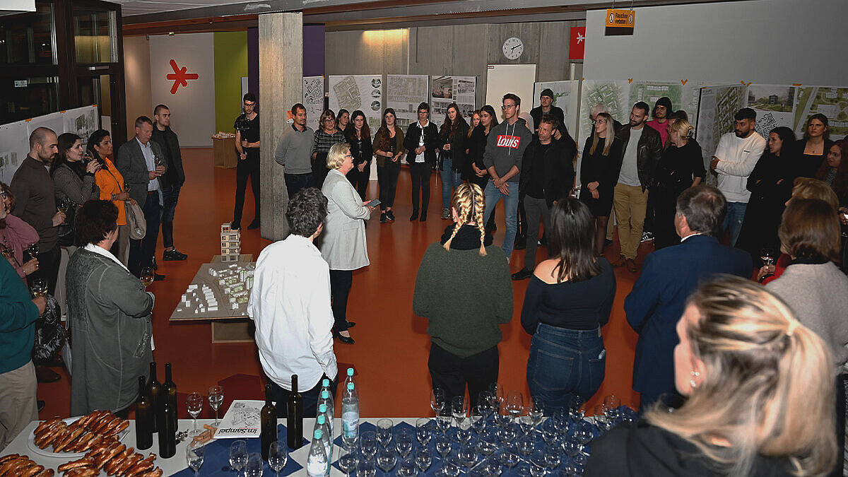 Für ihre Arbeiten, die die Neuordnung und Innenentwicklung der Flächen und Gebäude der Wohnsiedlung zum Gegenstand hatte, sind die Studierenden am Freitagabend mit dem (Franz-Georg-)Böttiger Preis ausgezeichnet worden, den die Wiesbaden Stiftung in Kooperation mit der Hochschule RheinMain vergibt.