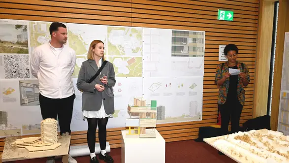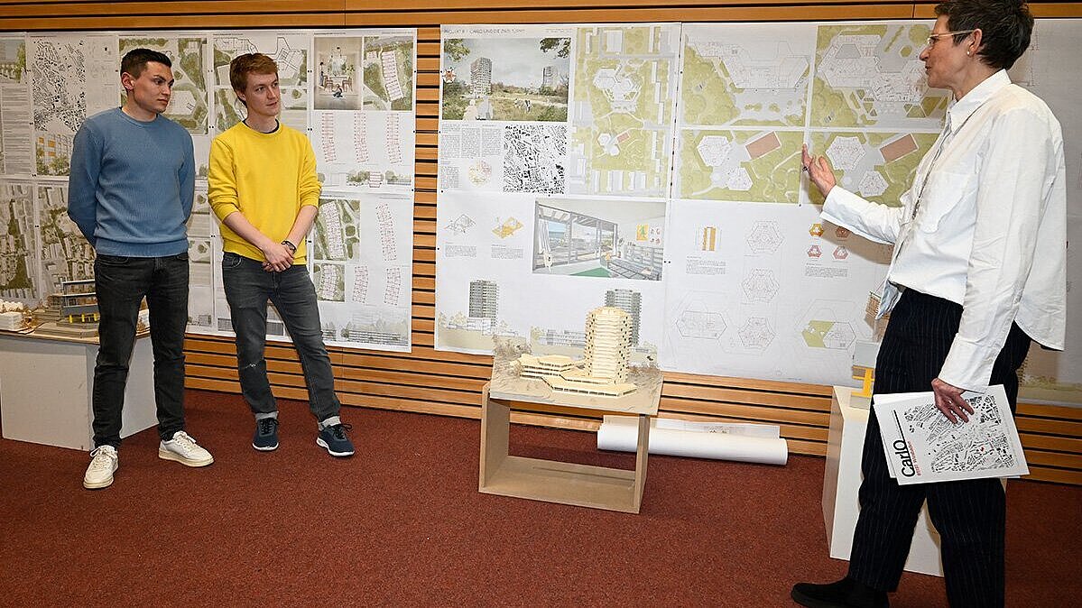 „Mit dem Preis werden besonders gelungene Arbeiten ausgezeichnet. Beim Entwurfsprojekt „CarlO“ handelt es sich um eine Aufgabenstellung aus einer Realsituation, das ist eine ganz typische Eigenschaft hier an dieser Hochschule“, so Prof. Dr. Andreas Brensing, Vizepräsident für Forschung, Transfer und Nachhaltigkeit, zur Eröffnung der Ausstellung. Anschließend begrüßte Dr. Marie-Luise Stoll-Stefan, stellvertretende Vorsitzende der Wiesbaden Stiftung, die Anwesenden. „Es ist sehr schön, dass die Studierenden die Möglichkeit haben, ihre Projekte auszustellen. Es sind fantastische Arbeiten entstanden und sie haben Potenzial, einen direkten Impact für Wiesbaden zu leisten“, sagte sie. Bewertet wurden die Arbeiten von einer externen Jury, die aus Mona Farag, Architektin bei Christ & Gantenbein, Iris Gisi, Umweltamt der Landeshauptstadt Wiesbaden, Julian Numberger, Landschaftsarchitekt bei NUWELA, und Alexander Harff, Prokurist und Abteilungsleiter Bauplanung/-vorbereitung bei der Wiesbadener Wohnungsbaugesellschaft mbH, bestand. Konzipiert, betreut und stetig weiterentwickelt wurde das Projekt von den Lehrenden Prof. Isabella Leber, Julia Christ und Aldis Pahl.