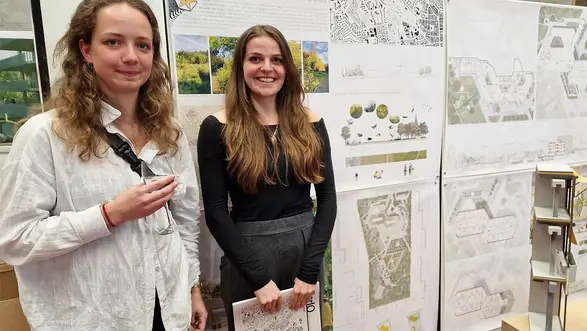 Da viele Arbeiten von der Jury als gelungen bewertet wurden, gab es zusätzlich zu drei Preisen zwei weitere Anerkennungen. Als beste Arbeit erhielt der Entwurf „Bios & Diversitas“ von Isabel Hiort und Natalia Claret-Smith den 1. Preis. Die Jury urteilte: „Natur und Mensch sollen sich auf Augenhöhe begegnen. Die Arbeit ist ein leuchtendes Beispiel dafür, wie mit den Themen Umwelt und Förderung der Biodiversität umgegangen werden kann.“ Ein gutes Team sind die beiden schon länger: „Wir haben uns im ersten Semester kennengelernt, seitdem jedes Projekt zusammen gemeistert und nun gemeinsam den Böttiger Preis gewonnen. Die Aufgabe hat total Spaß gemacht, war aber auch sehr aufwendig aufgrund der Größe des Geländes und Bestands“, berichteten sie.