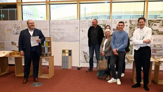 23.04.2024 - Am Freitagabend wurde erneut der Böttiger Preis an Studierende des Masterstudiengangs Architektur | Bauen mit Bestand verliehen. Die Preisverleihung fand im Rahmen einer Kooperation der Wiesbaden Stiftung mit der Hochschule RheinMain (HSRM) statt und bietet Studierenden eine öffentlichkeitswirksame Darstellung ihrer Entwürfe. Das Thema der Entwurfsaufgabe war diesmal die Umnutzung der Carl-von-Ossietzky-Schule in Wiesbaden-Klarenthal. Die zehn besten Entwürfe der Projektaufgabe „CarlO – Bestand weiterentwickeln“ wurden im G-Gebäude am Campus Kurt-Schumacher-Ring ausgestellt. Dabei waren vielfältige Ideen zu Transformationen der im Jahr 1978 im Stil des Brutalismus erbauten Carl-von-Ossietzky-Schule und deren umliegenden Flächen zu sehen.