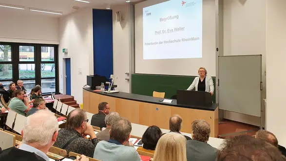 Nach dreijähriger Pause fand an der Hochschule RheinMain am Dienstag das traditionelle Dreikönigstreffen der Materialprüfanstalt für Bauwesen (MPA) Wiesbaden statt. Eröffnet wurde die von mehr als 80 Teilnehmer:innen besuchte Fachveranstaltung der im Fachbereich Architektur und Bauingenieurwesen angesiedelten MPA von Hochschulpräsidentin Prof. Dr. Eva Waller und dem Leiter der MPA Prof. Dr. Christian Heese. „Die MPA steht exemplarisch für den starken Praxisbezug der Hochschule – lösungsorientiert und am Puls der Zeit; mit dem Dreikönigstreffen fördert sie zudem aktiv den Informationsaustausch und Wissenstransfer“, so Prof. Dr. Waller. „Deshalb freue ich mich sehr, diese Veranstaltung heute eröffnen zu dürfen.“