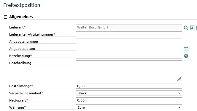 Alle anderen Pflichtfelder müssen freihändig bzw. mit den vorgegeben Informationen aus dem Angebot ausgefüllt werden.