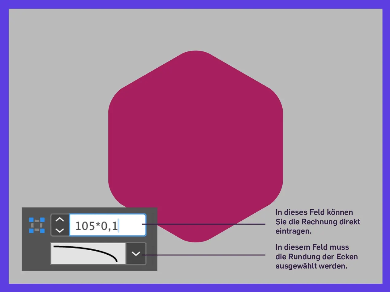4. Runden Sie die Ecken ab. Der Radius wird mit dem Faktor 0,1 der Waben-Breite berechnet.
