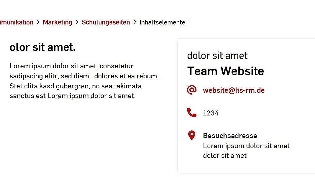 Im Bild rechts sehen Sie die Variante "Große Kontaktbox". In diesem Beispiel wird der unter "Besuchsadresse" eingetragene Text angezeigt.