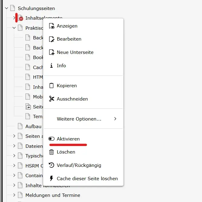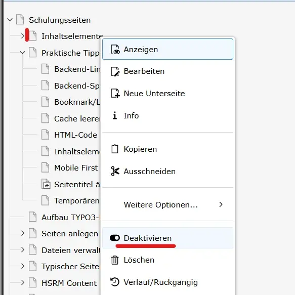 Neu angelegte oder kopierte Seiten sind standardmäßig deaktiviert. Wir empfehlen diese erst dann zu aktivieren, wenn Inhalte final sind. Die Vorschau einer Seite ist sowohl für aktive als auch für deaktivierte Seiten möglich, sofern der/die Nutzer:in im Backend eingeloggt ist.