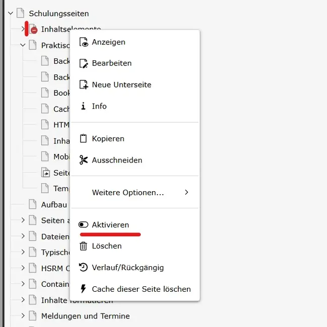 Seite aktivieren oder verbergen