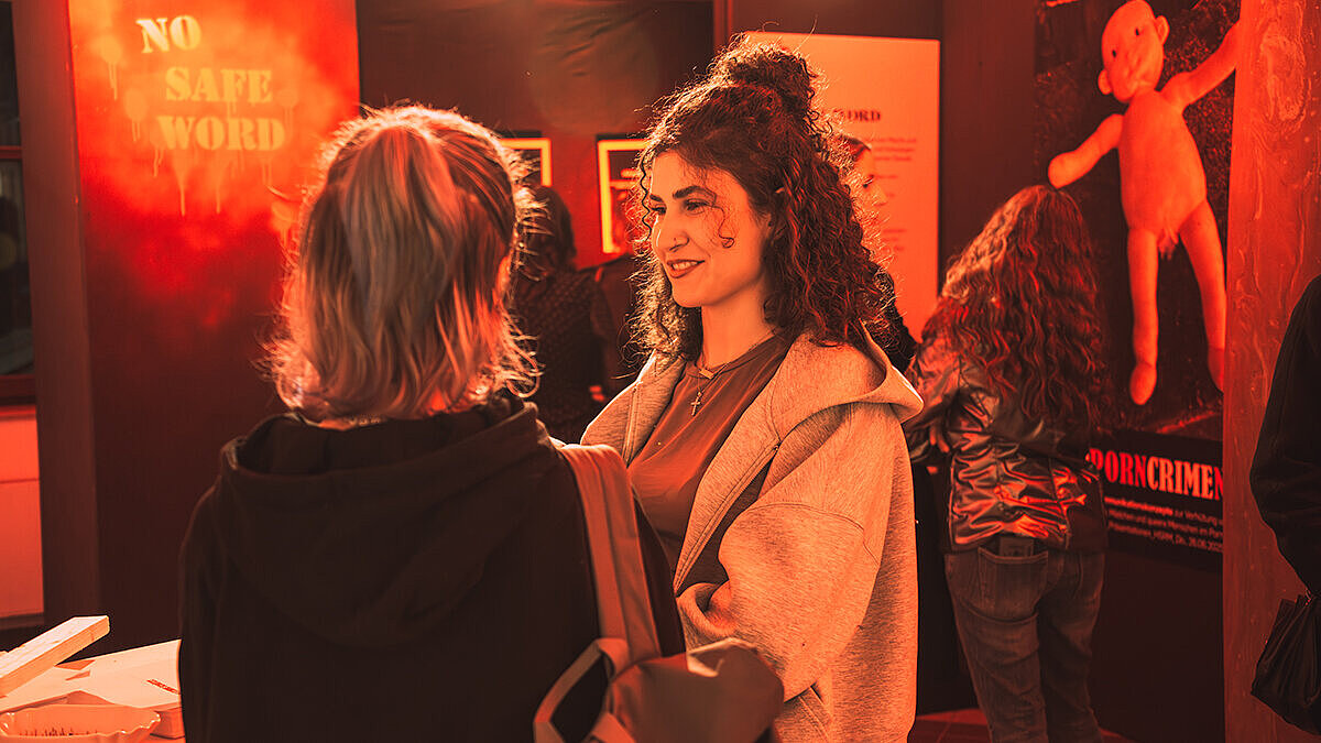 Besonders eindrücklich widmet sich die Ausstellung auch dem Thema Jugendschutz im digitalen Raum. Bildschirme in einem nachgestellten Kinderzimmer zeigen Textnachrichten und zensierte Fotos, mit denen Kinder und Jugendliche online zu Missbrauchsopfern werden. Der Oberbürgermeister der Landeshauptstadt Wiesbaden Gert-Uwe Mende lobte den Mut der Studierenden, „diese schwierigen Bereiche auszuleuchten“. Die Arbeiten der Studierenden seien „Einladungen zum Hinschauen, zum Nachdenken, zum Diskutieren und manches Mal sicherlich auch zum Aushalten“.