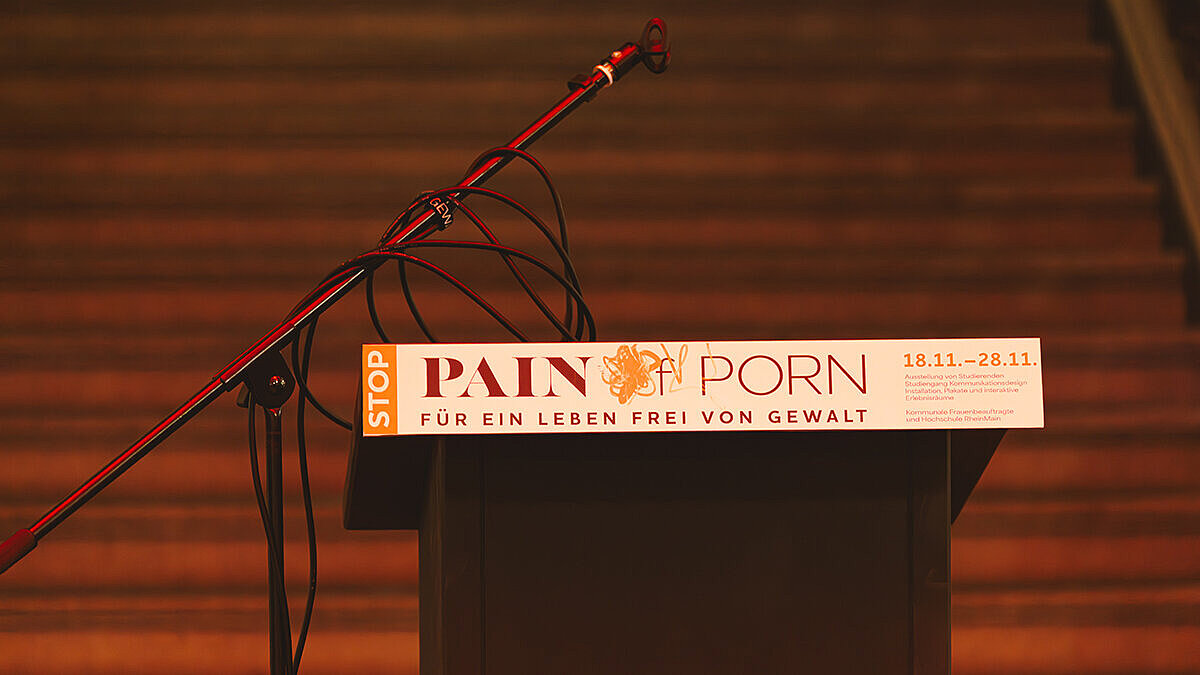 „Heute wird das Wiesbadener Rathausfoyer zu einem Ort, der bewegt, aufrüttelt und zum Nachdenken zwingt“, erklärte Hochschulpräsidentin Prof. Dr. Eva Waller bei der Vernissage am 18. November 2025. Die in der Ausstellung „Stop Pain of Porn – Für ein Leben frei von Gewalt“ gezeigten Kunstwerke seien ein Sprachrohr für gesellschaftliche Verantwortung und Empathie. Bis zum 28. November 2025 machen Installationen, Plakate, Skulpturen und performative Erlebnisräume sichtbar, was oft im Verborgenen bleibt – geschlechtsspezifische Gewalt im Kontext von Pornografie und Prostitution.