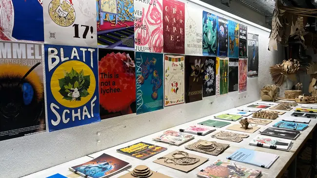 44 Bachelorarbeiten, neun Masterarbeiten und einige Semesterprojekte zeigten die Kommunikationsdesign-Studierenden diesmal. Julia Baumgarten stellte ihre Arbeit „emolation“ vor, eine Fashion Brand, die eigene Lieblingslieder mittels generativem Design zum Beispiel in individuelle Häkelmuster für Schals übersetzt. Um Musik drehte sich auch die Masterarbeit von Laurenz Strasser: Der Kommunikationsdesigner konstruierte eine physische 3-D-Installation, um – in Kombination mit visueller 2-D-Grafik – Musik visuell erfahrbar zu machen. Mit ihrem Projekt „RIQO“ hat Jule Langolf wiederum eine Schriftart entwickelt, die Texte für Menschen mit Einschränkungen besser lesbar macht.