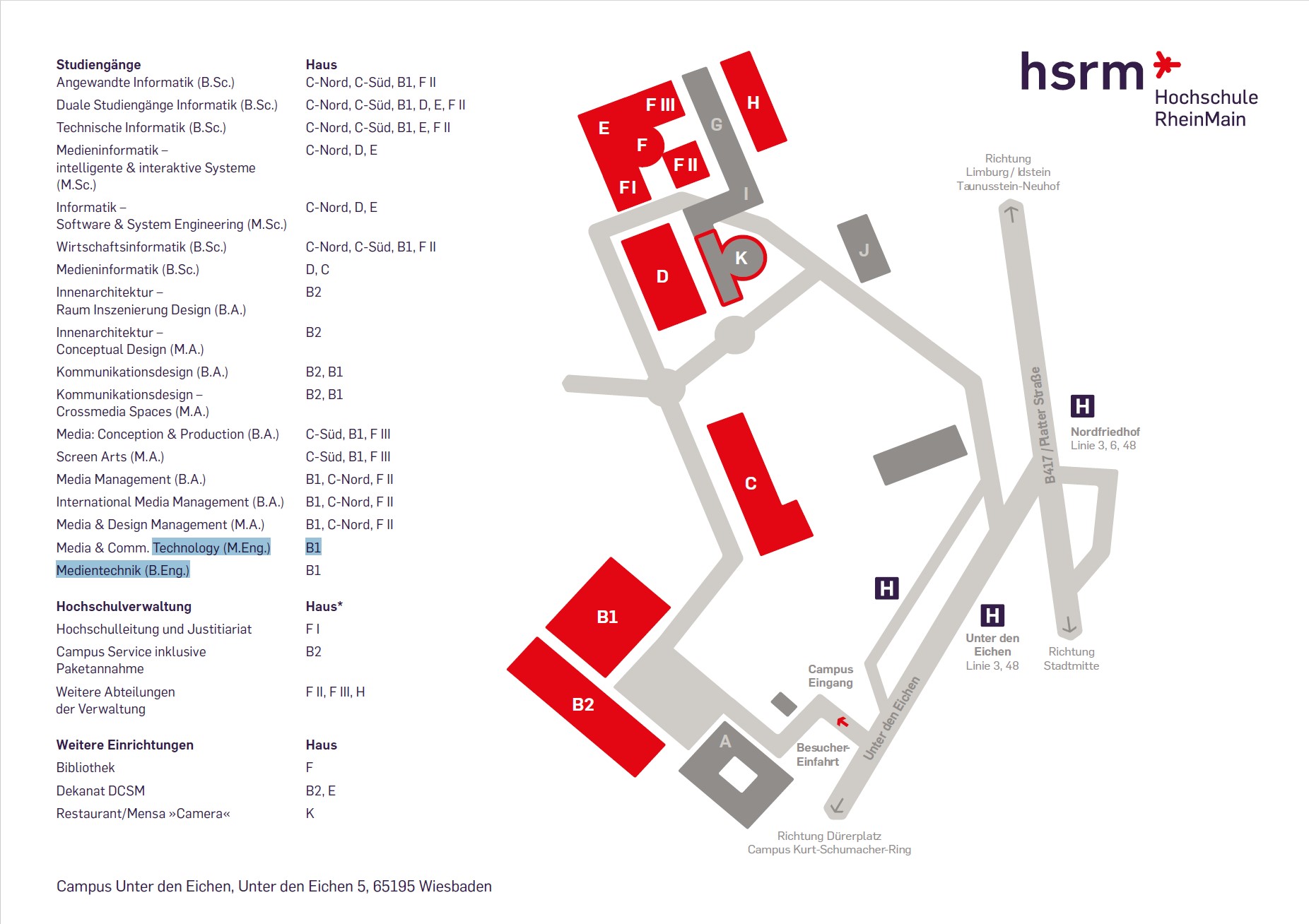 Auf dem Campus Unter den Eichen stehen nach vorheriger Anmeldung für Besucher:innen kostenlose Parkplätze zur Verfügung. Das Parkplatzangebot rund um den Campus ist beschränkt.