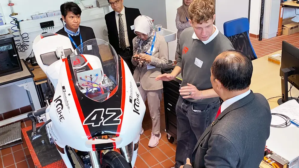 Following a guided tour of the Rüsselsheim Campus and the faculty’s laboratories, Dr. Guido Schnieders, DAAD Director Regional Office Jakarta, led a matchmaking event attended by members of university leaders and representatives from Aschaffenburg University of Applied Sciences, Fulda University of Applied Sciences, Koblenz University of Applied Sciences, Mainz University of Applied Sciences and HSRM. The goal was to discuss concrete cooperation projects with the Indonesian delegation.