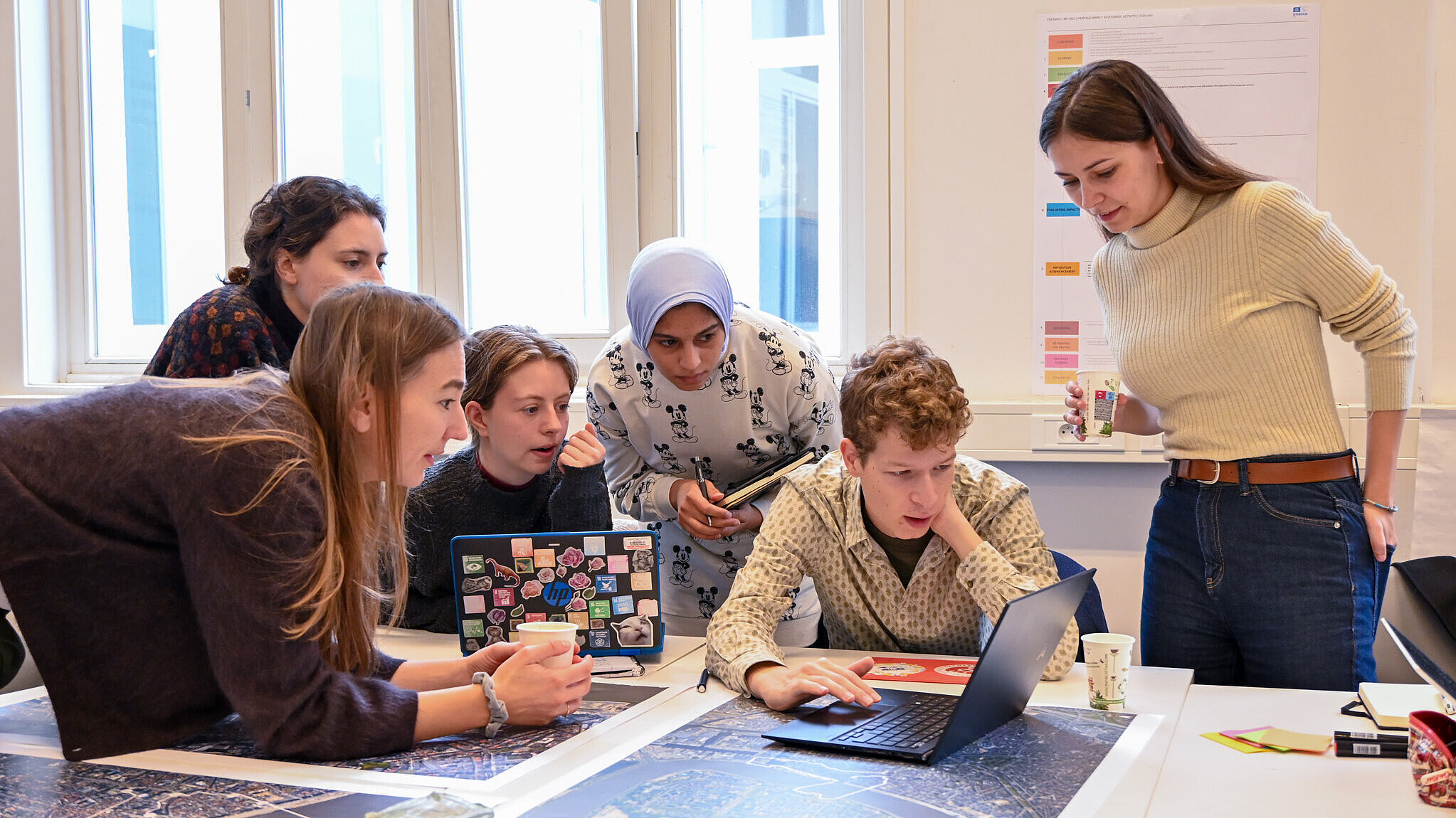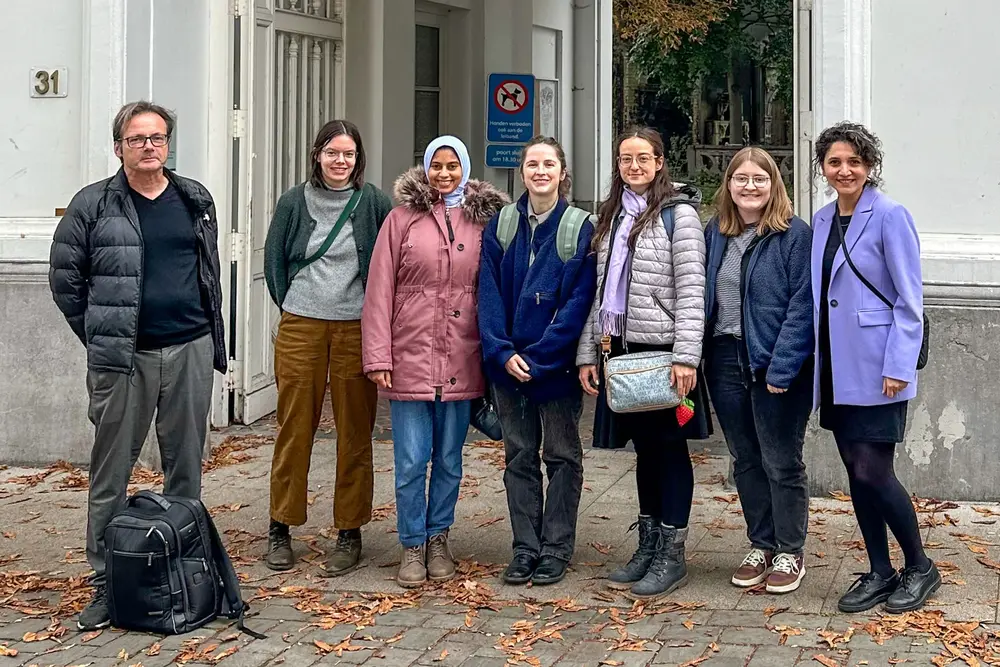 Five students from RheinMain University of Applied Sciences — Elizabet Hristrova, Eva Lützeler, Johanna Lentes, Noha Mourad, and Pia Decker — together with Prof. Michael Kloos and Dr. Merve Demiröz-Torun had the opportunity to participate in the “HERILAND Blended Intensive Program 2025” at the University of Antwerp. The program took place in the form of webinars and on-site in Antwerp and was organized by Prof. Dr. Yonca Erkan and Fiona Hamilton. More than 40 students and professors from various European universities participated: University of Antwerp, Vrije Universiteit Amsterdam, University of Gothenburg, Vilnius University, and RheinMain University of Applied Sciences.