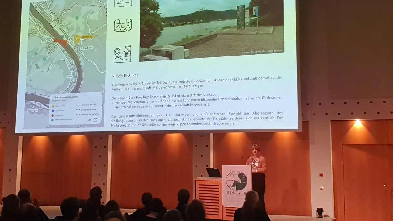 Hochschule RheinMain was represented by Prof. Michael Kloos, holder of the UNESCO Chair for Historic Urban Landscapes and Cultural Heritage Impact Assessments, as well as by Hjördis Dall, a student on the master's degree program Baukulturerbe | Bauen mit Bestand. Prof. Kloos gave a lecture entitled "Cultural heritage impact assessments: Basics and Case Studies" and highlighted key aspects of these methods for the protection of World Heritage Sites. Hjördis Dall presented a semester project on wind power and World Heritage. Numerous members of the Baukultur network, founded by former students of the degree program, were also present.