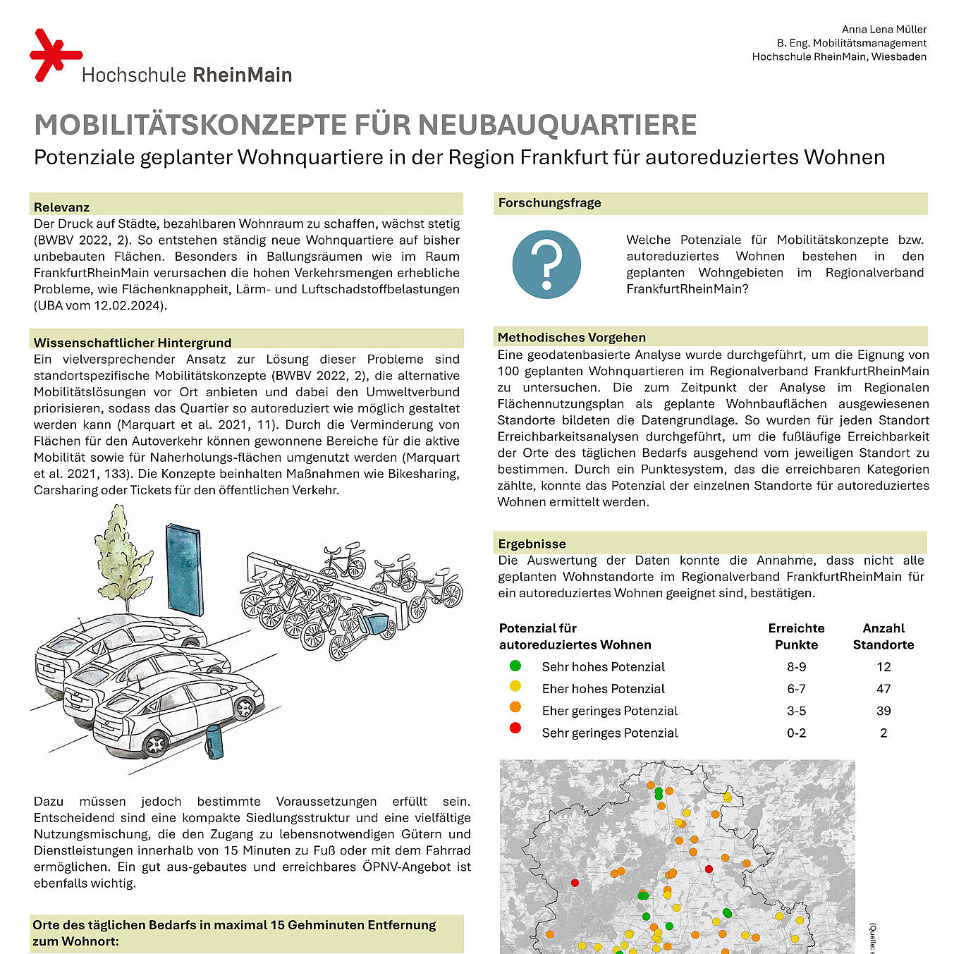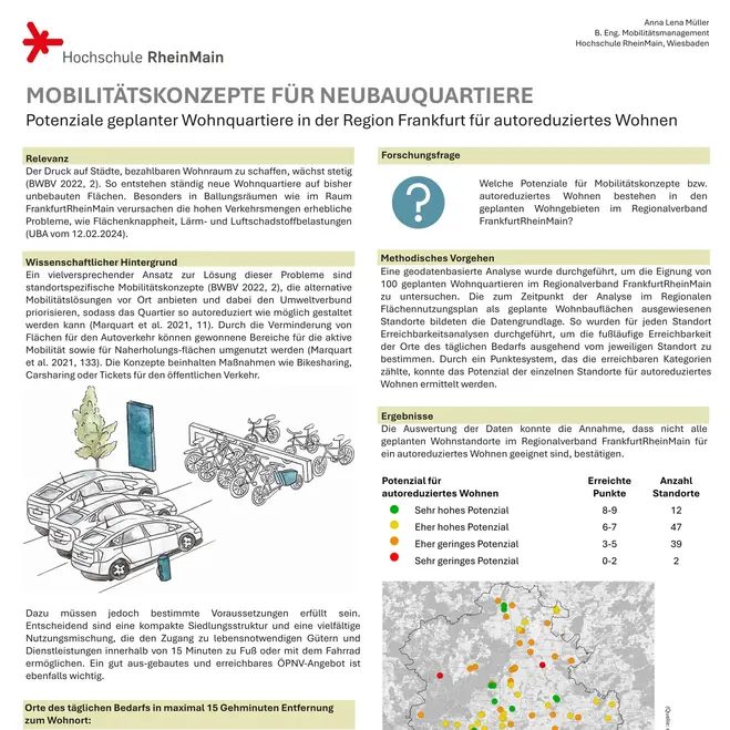 Anna Lena Müller, graduate of the Bachelor's degree in Mobility Management, was awarded first place in the VCD Award for her thesis. She convinced the jury, consisting of representatives from teaching, research and associations, with her thesis on "Mobility concepts for new residential areas - potentials of planned new residential areas for Sustainable Mobility using the example of the FrankfurtRhineMain Regional Association". In her thesis, she investigated how Sustainable Mobility can be promoted in new residential areas of the FrankfurtRhineMain Regional Association. Her recommendations for action are based on practical examples from Hesse.