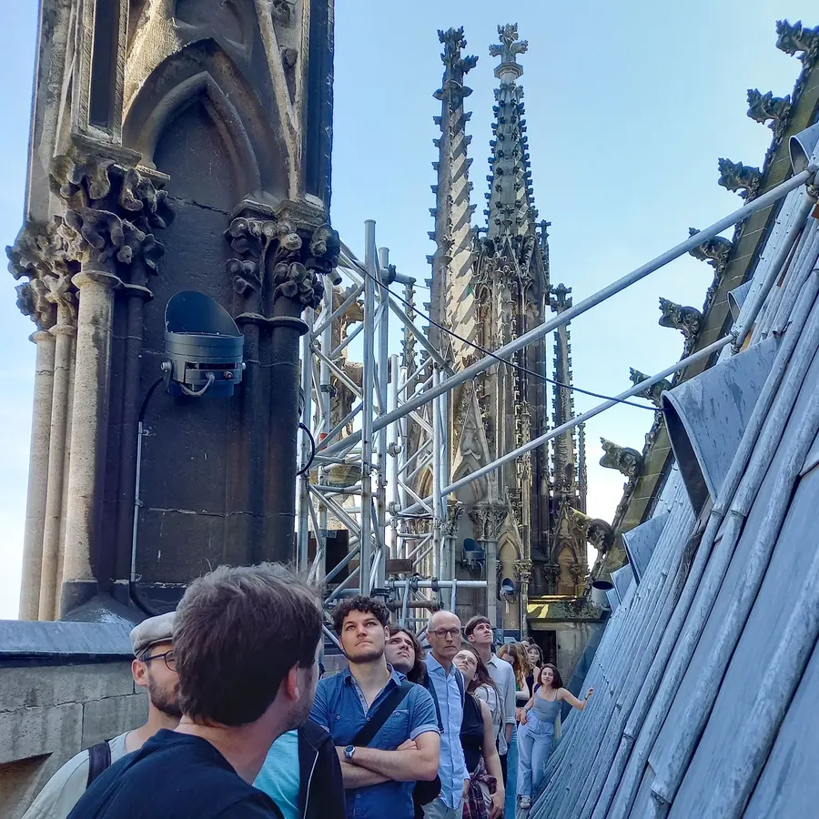 Around 20 students from the bachelor's degree program Architectural Heritage Conservation took part in an excursion to Cologne on 18 June 2025. Led by Professor Voormann and Professor Duppel, the program included a guided tour of the Kolumba Museum and an inspection of the roof structures and crossing tower of Cologne Cathedral.