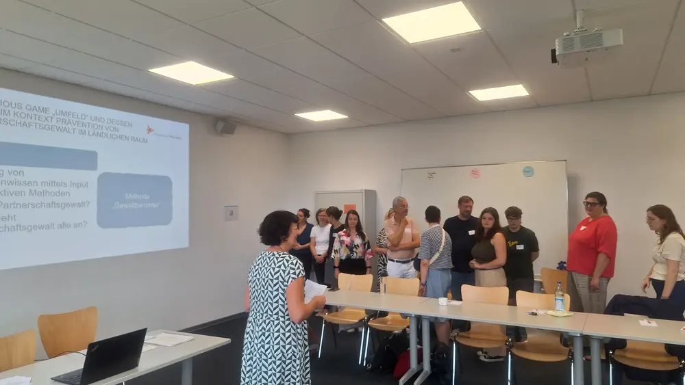 Im Rahmen des Workshops möchten wir eine Methode des Edutainments zur Primärprävention von Partnerschaftsgewalt vor- und zur Diskussion stellen, konkret das Serious Game „Umfeld“. Dieses wurde im Rahmen des BMBF geförderten interdisziplinären Forschungsprojekts „Aufs Spiel setzen – neue Wege der Hilfe und Prävention bei Gewalt in der Paarbeziehung im ländlichen Raum – AusWege“ (01.07.2020 – 31.12.2024) unter Leitung von Prof. Dr. Regina-Maria Dackweiler und Prof. Dr. Reinhild Schäfer entwickelt, erprobt und evaluiert.