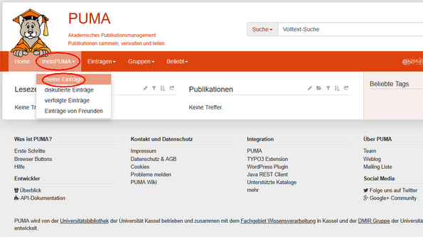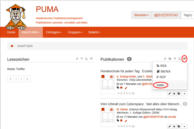 Sie können direkt in Ihrem Bibliothekskonto im “alten” Katalog Titel der Merkliste exportieren, oder Sie gehen über PUMA (PUblikationsMAnagement der Uni Kassel - bisheriger Betreiber der Merklisten).