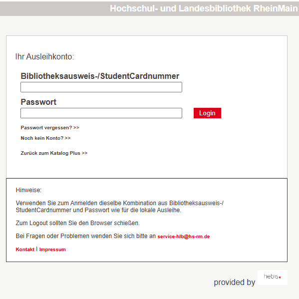 - Gehen Sie auf die Seite: https://puma-hsrm.hebis.de/login