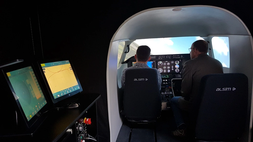 Die Hochschule bietet verschiedene Flugsimulatoren, die Studierenden die Möglichkeit geben, verschiedene Flugzeugtypen aus Piloten:innensicht in Lehrveranstaltungen und für Forschungszwecke zu testen.