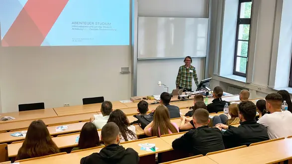 Was sind die Unterschiede zwischen einer Universität und einer Hochschule für Angewandte Wissenschaften? Wie funktioniert die Bewerbung für einen Studienplatz? Wo kann ich mich zum Thema Studium beraten lassen? Was zeichnet die Hochschule RheinMain (HSRM) aus? Diese Fragen und noch viele mehr beantwortete Alexander Kallenberg von der Zentralen Studienberatung (ZSB) einer Gruppe von 20 Schüler:innen der Deutschen Schule Athen aus Griechenland während ihres Besuchs an der HSRM.