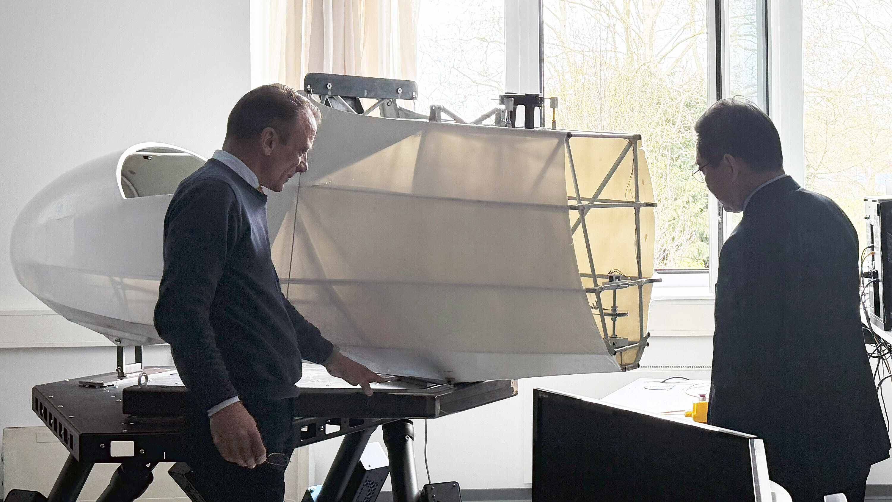 Im Rahmen der anschließenden Campus-Tour wurden verschiedenen Labore und Schwerpunkte des Fachbereichs Ingenieurswissenschaften vorgestellt. Die Tour begann mit einem Einblick in die Avionik und unbemannte Luftfahrzeuge durch einen Besuch des dazugehörigen Labors. Danach folgte eine Vorstellung des Flugsimulators; hier konnten sich die Gäste einmal selbst für eine Landung oder einen Start ins Cockpit setzen. Es folgte ein Besuch des Labors für Wasserstofftechnologie und Energiespeicher. Die Tour endete mit einer Führung durch die Kfz-Halle und die Werkstatt, um unter anderem die interdisziplinäre Arbeit des Racing Teams Scuderia Mensa zu präsentieren.