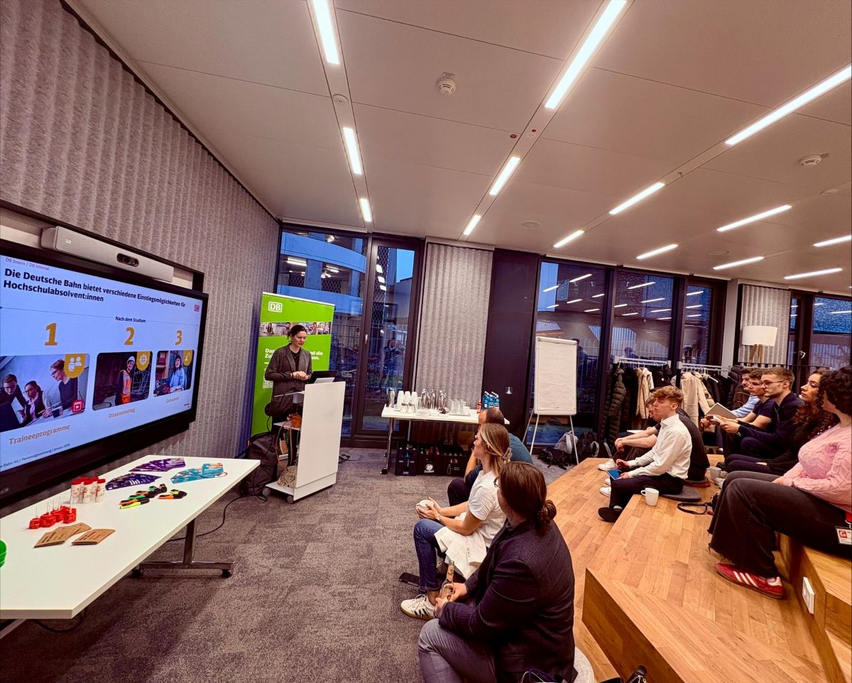 Im Mittelpunkt standen nicht nur Highlights rund um die Bahn und aktuelle Herausforderungen, sondern vor allem der Austausch mit zwei Führungskräften, die den Studierenden sehr unterschiedliche, aber gleichermaßen wertvolle Perspektiven eröffneten. Eine erfahrene Führungskraft mit langjähriger Konzernzugehörigkeit berichtete über strategische Entwicklungen, Veränderungsprozesse und persönliche Erfahrungen aus vielen Jahren Führungspraxis. Ergänzt wurde dies durch die Sichtweise einer jungen weiblichen Führungskraft, die ihren Karriereweg, moderne Führungsansätze sowie den Umgang mit Verantwortung und Entscheidungsfindung in einem dynamischen Umfeld schilderte.