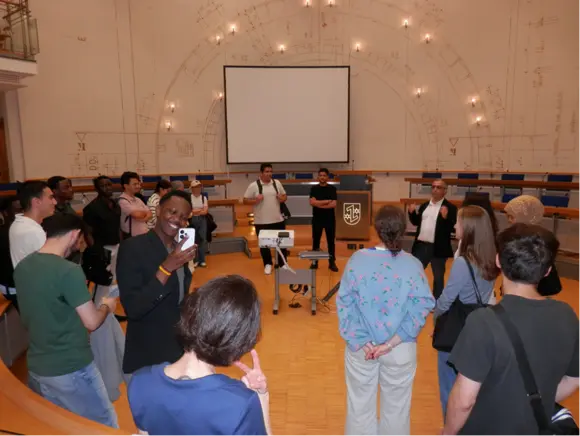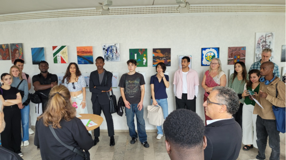 Mit Unterstützung des Interkulturellen Büros der Stadt waren die 23 Bilder der Studierenden aus 13 Ländern an der hellerleuchteten Rückwand des Ratssaals aufgehängt worden, wo zahlreiche Besucher:innen sie am 4. September im feierlichen Rahmen bewundern konnten.