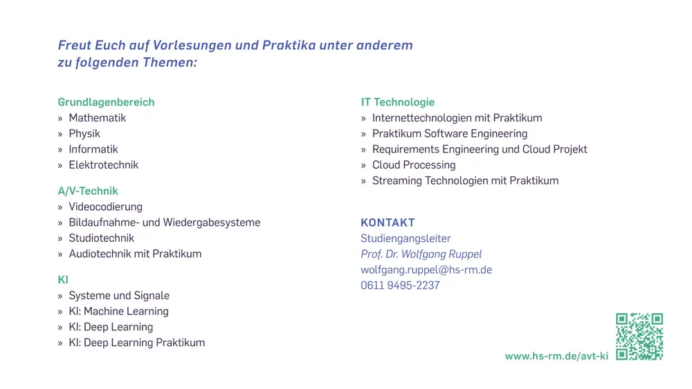 Hier geht es direkt zum neuen Studienangebot Audiovisuelle Technologien & KI