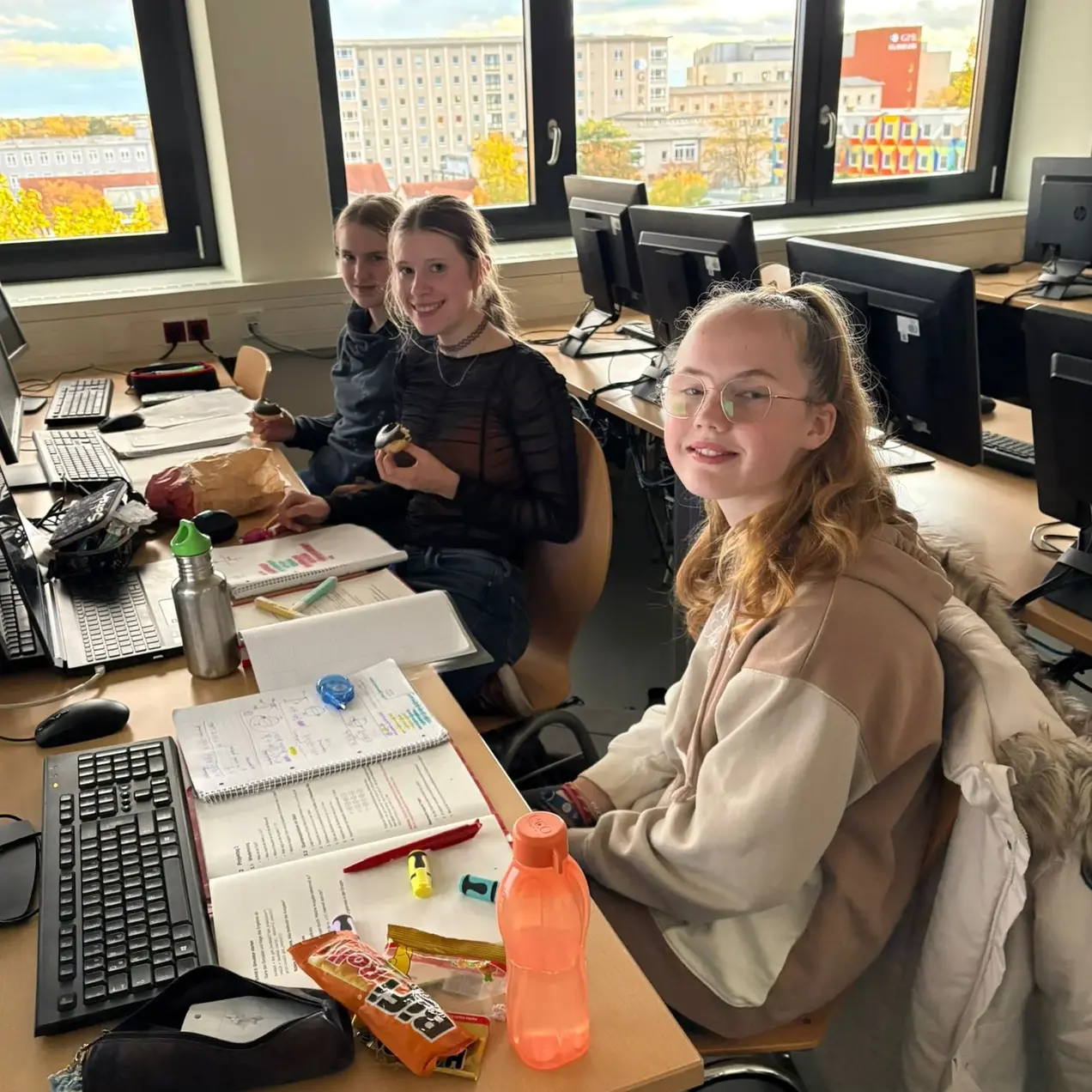 Drei Schülerinnen der 10. Klasse nahmen an einem dreitägigen Abendkurs an der Hochschule RheinMain teil und tauchten in die Physik der Quanten ein. Mit Qiskit, dem Open-Source-Framework von IBM, schrieben und simulierten sie erste einfache Quantenalgorithmen.