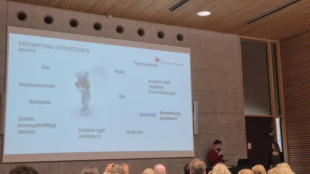 Googelst Du noch, oder promptest Du schon? KI-Tools spielen eine immer wichtigere Rolle – und das nicht nur bei der Websuche. Aber wie erhalte ich gute Ergebnisse? Und welche Regeln gilt es beim Prompten zu beachten? Der an der Hochschule RheinMain (HSRM) dieses Jahr erstmalig veranstaltete Promptathon widmete sich vergangenen Dienstag genau diesen Fragen und ermöglichte es Studierenden, Mitarbeitenden und Professor:innen, in entspannter Atmosphäre an der eigenen Prompting-Strategie zu feilen.