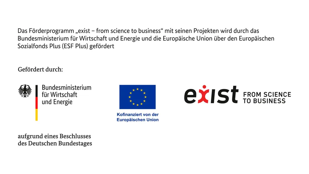Das Projekt „IDA Health“ (Förderkennzeichen: 03EGTHE044) wird im Rahmen des EXIST-Programms durch das Bundesministerium für Wirtschaft und Energie und den Europäischen Sozialfonds Plus (ESF Plus) gefördert.