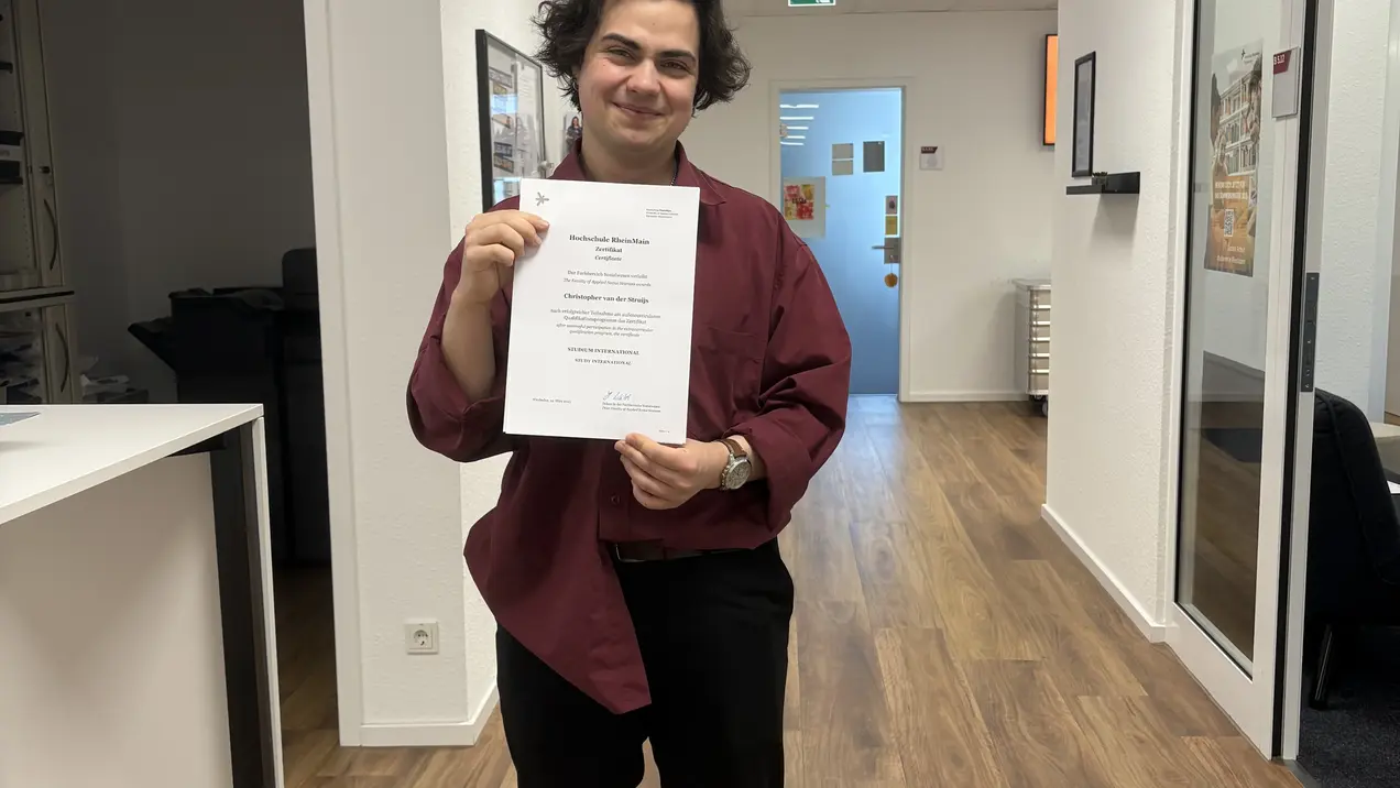 In Zukunft möchte Christopher weiter in Richtung Internationale Soziale Arbeit gehen und im norwegischen Bergen das Masterstudium Psychologie, Soziale Arbeit und Medizin absolvieren, um seine Kenntnisse zu den Themen Sucht und Trauer mit einer internationalen Perspektive zu bereichern. Das Team International wünscht ihm dabei alles Gute und gratuliert nicht nur zum verdienten Erhalt des Zertifikats, sondern ebenso zu den beeindruckenden Erfahrungen, die er während seines Bachelorstudiums am Fachbereich Sozialwesen machen konnte. Sie werden ihm im Verlauf des weiteren Lebensweges sicher sehr nützlich sein.