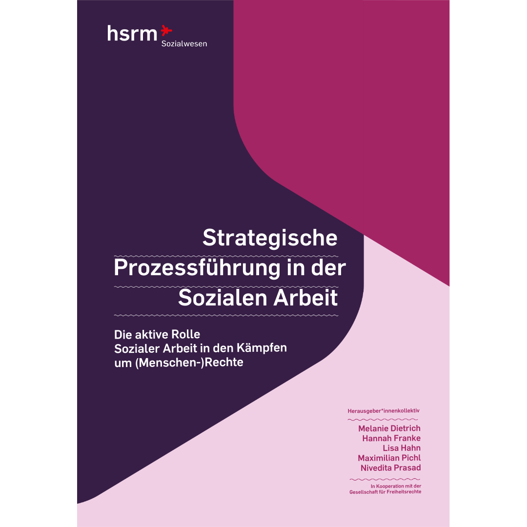 In einem interdisziplinären Arbeitsprozess, angesiedelt am Fachbereich Sozialwesen der Hochschule RheinMain und in Kooperation mit der Gesellschaft für Freiheitsrechte, ist eine Broschüre entstanden, um diese Methode für die Soziale Arbeit vorzustellen. Dabei geht es um die Möglichkeiten und Grenzen Strategischer Prozessführung, die Toolbox und die Ressourcen dieser Methode sowie um Praxiseinblicke. Die Broschüre richtet sich an Student*innen der Sozialen Arbeit, Fachkräfte in der Praxis, die mit der Methode arbeiten wollen, aber auch an Rechtsanwält*innen und Verbände, die in Klagestrategien mit Sozialer Arbeit zusammenwirken.