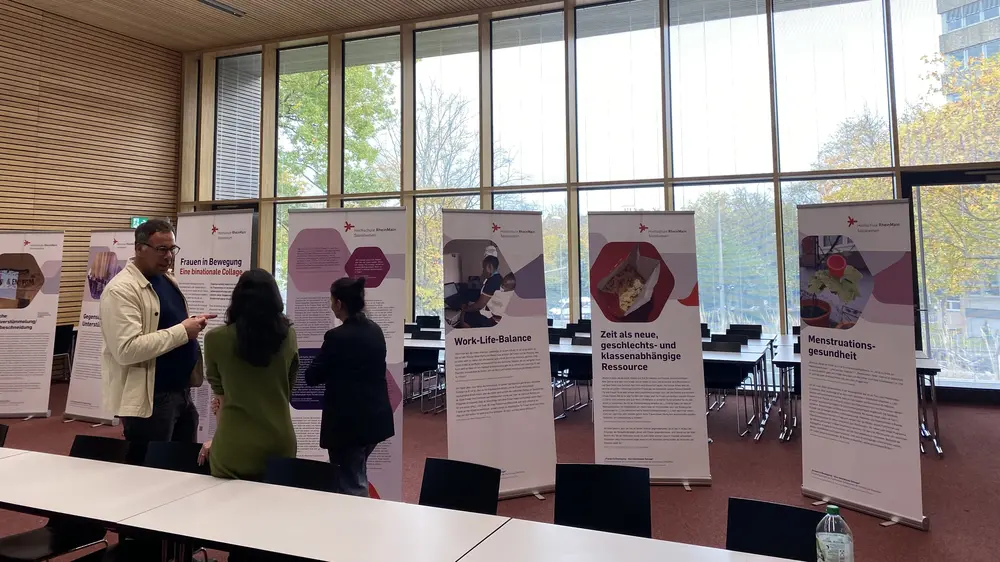 Die Fotoausstellung „Frauen in Bewegung: eine binationale Collage“, die im Rahmen eines Forschungsprojekts mit Studierenden des Master-Studiengangs Soziale Arbeit unter der Leitung von Dr. Kronsbein entstanden ist, machte den Teilnehmer:innen des Forschungstags anschaulich, dass es auch darum geht, aus dem internationalen Austausch von Frauenbewegungen Motivation zu schöpfen für zukünftige Projekte der Sozialen Arbeit.