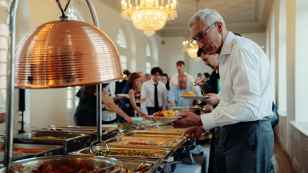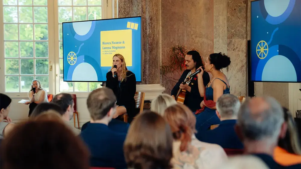 Der Abend im Schloss Biebrich war nicht nur ein feierlicher Anlass, sondern auch Ausdruck der Gemeinschaft und des kreativen Schaffens der Studiengänge. Die lebhafte Moderation von Lilly Jeppe und Joel-Niaz Miwtoo, die selbst auf dem Weg zu ihrem Bachelorabschluss sind, sorgte für eine ansteckende Begeisterung und herzliche Atmosphäre ebenso wie die musikalischen Einlagen der beiden Fünftsemester Lorena Wegman und Bianca Nwaeze. Bei einem festlichen Büfett klang der Abend schließlich aus.