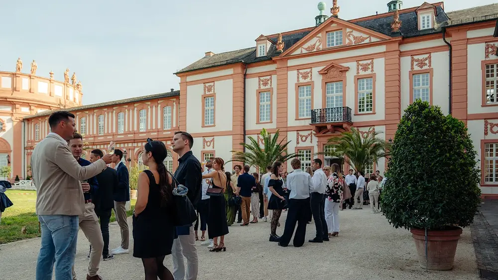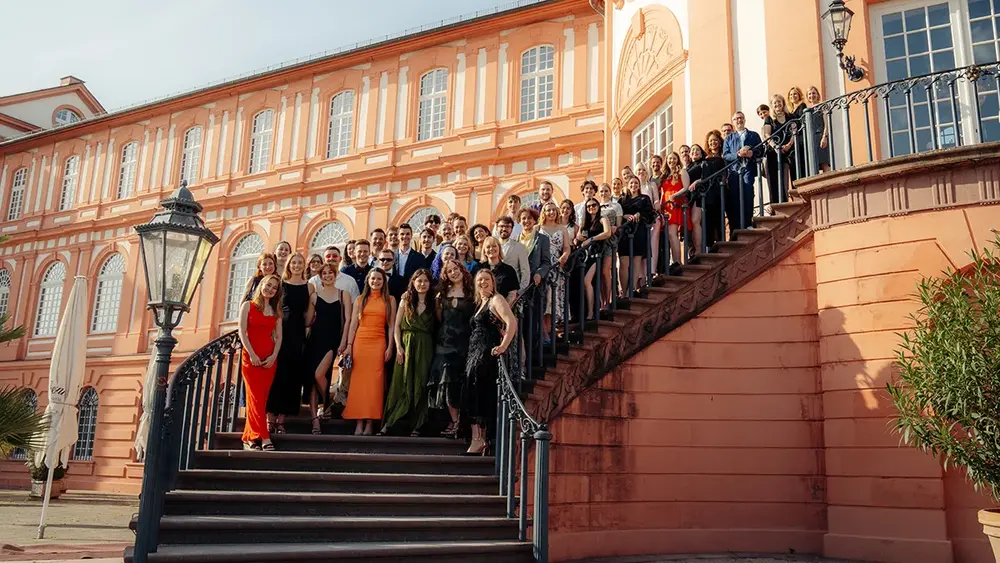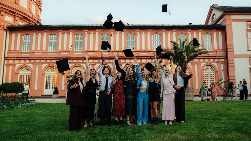 Das beeindruckende Ambiente des Biebricher Schlosses bot am vergangenen Freitag die ideale Kulisse für die Abschlussfeier der Studiengänge Media: Conception & Production und Creative Media Conception (beziehungsweise Screen Arts). Insgesamt 35 Bachelor- und acht Masterabsolvent:innen, darunter auch solche mit einem Doppelabschluss in Kooperation mit der thailändischen Partnerhochschule ICO NIDA, erhielten aus den Händen der Studiengangsleitung ihre Urkunden – und natürlich zahlreiche Gratulationen aus der gesamten Hochschule RheinMain.