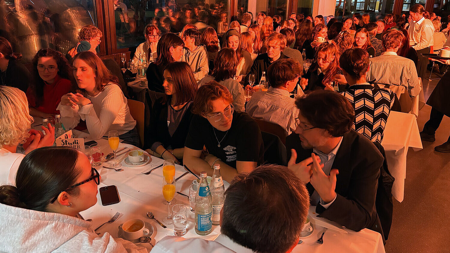Der Abend kam bei den Studierenden erneut hervorragend an. Selma, Studentin im Studiengang International Management, fand das Studi-Dinner „sehr gut, das Essen ist top!“ Auch ihr Kommilitone, Media-Management-Student Vincent, war begeistert von der Veranstaltung: „Der Abend ist sehr cool und die Atmosphäre sehr schön.“ Musikalisch untermalt wurde der Abend mit leckeren Speisen wieder durch das Duo Melissa Muther und Lennart Allkemper.