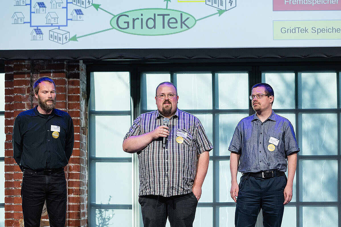 Im Beisein von Timon Gremmels, hessischer Minister für Wissenschaft und Forschung, Kunst und Kultur, und dem Vizepräsidenten der HSRM Prof. Dr. Andreas Brensing präsentierte das Team im Lokschuppen Marburg ihren Batteriespeicher zur Netzentlastung namens GridTek.