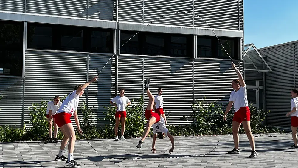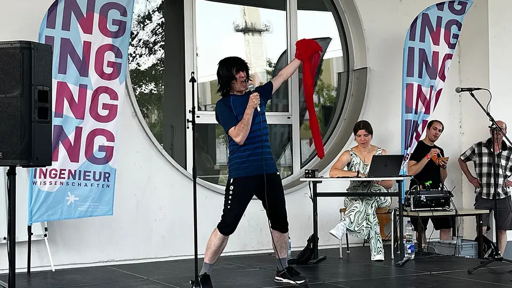 Für Abkühlung bei den hohen Temperaturen sorgte die Feuerwehr Rüsselsheim mit ihren Strahlrohren. Hoch hinaus brachte die Drehleiter die Besucher:innen der Engineering Night, die so den Campus aus der Vogelperspektive betrachten konnten. Wer sich sportlich betätigen wollte, konnte die Boulderwand erklimmen oder sich im Jonglieren versuchen. Sportliche Meisterleistungen zeigte auch die Seilsprung-Gruppe „Flying Ropes“, die für ihren Auftritt begeisterten Applaus erhielt.