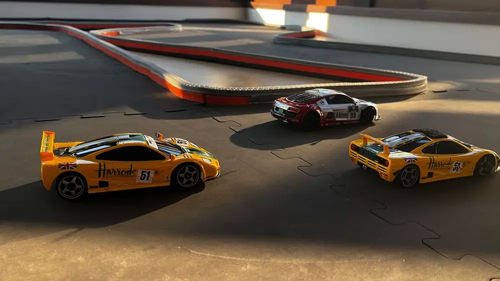 Am Abend sorgte DJ Prof. Dr. Matthias Götz mit einer Lip-Sync-Show und einem Musikquiz für Unterhaltung. Und auch auf der Versuchsrennbahn herrschte gute Stimmung während Patrick Burghardt, Oberbürgermeister der Stadt Rüsselsheim am Main, Prof. Dr. Andreas Brensing, Vizepräsident für Forschung, Entrepreneurship und Wissenschaftskommunikation an der HSRM, und der Dekan des Fachbereichs Prof. Dr.-Ing. Christian Glockner im VIP-Rennen gegeneinander antraten. Für das leibliche Wohl sorgten Foodtrucks sowie die Getränke und Cocktails vom Stand des Allgemeinen Studierendenausschusses (AStA).