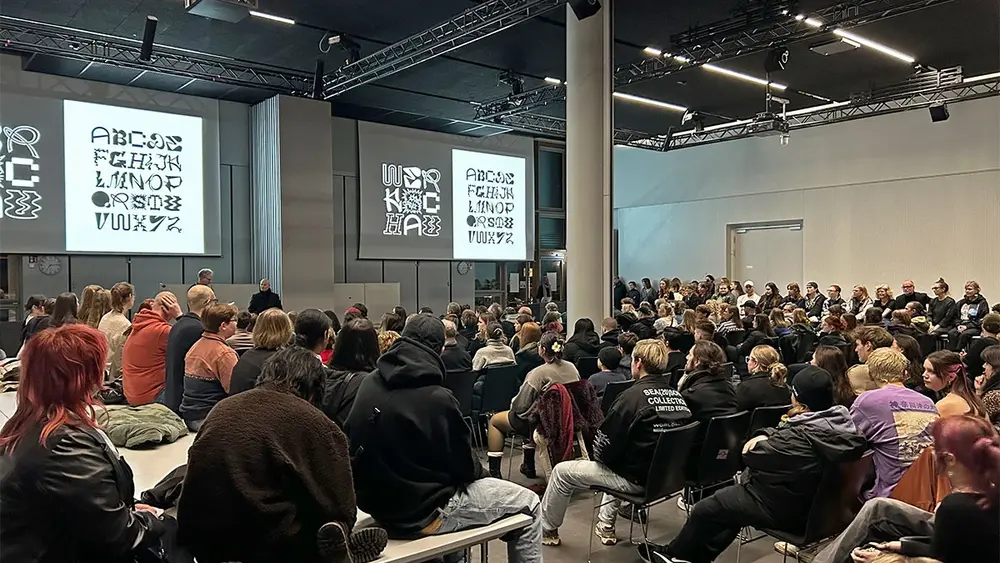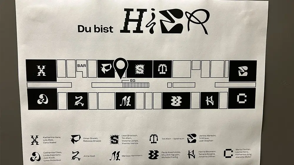 Grundkonzept in diesem Semester: Der Name der traditionellen Ausstellung ist gleichzeitig der Titel der Ausgabe. Und so ziert ein Werkschau-Schriftzug in Versalien sämtliche Kommunikationsmittel. Zusammengesetzt ist er aus einem eigens für diesen Zweck entwickelten Alphabet aus 26 typografisch auffälligen Buchstaben, die die Besucher:innen durch die Ausstellung begleiten. Eine Stempelkarte sorgt dafür, dass niemand einen Raum und damit eine Arbeit übersieht. „Ein tolles Konzept!“, fand in seinem Grußwort auch Prof. Jörg Waldschütz, Leiter des Bachelorstudiengangs. „Neben einer gelungenen Wegeführung sind viele großartige Arbeiten entstanden, die inspirieren und gleichzeitig nachdenklich machen.“
