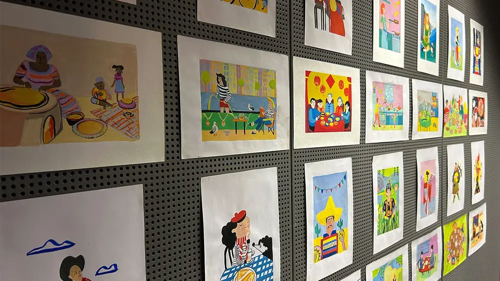Zu sehen gibt es auch dieses Mal wieder eine große Bandbreite an Projekten: eine interaktive Installation über das Phänomen, in Dingen und Mustern vermeintliche Gesichter und vertraute Wesen oder Gegenstände zu erkennen („Pareidolie Postcards“), ein Buch, das dazu einlädt, dem sogenannten Prokrastininchen auf eine verbale und illustrative Reise durch menschliche Verhaltensmuster zu folgen („100 Wege, die du dir sparen kannst“) oder ein illustriertes Kochbuch mit Rezepten aus aller Welt („Pfannkuchen“). Daneben gibt es satirische Projekte wie „TOOLSFORFOOLS“, das Männer auf unkonventionelle Weise mit feministischen Perspektiven konfrontiert.