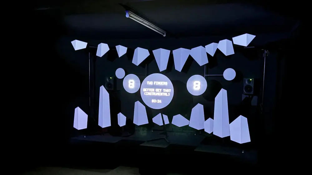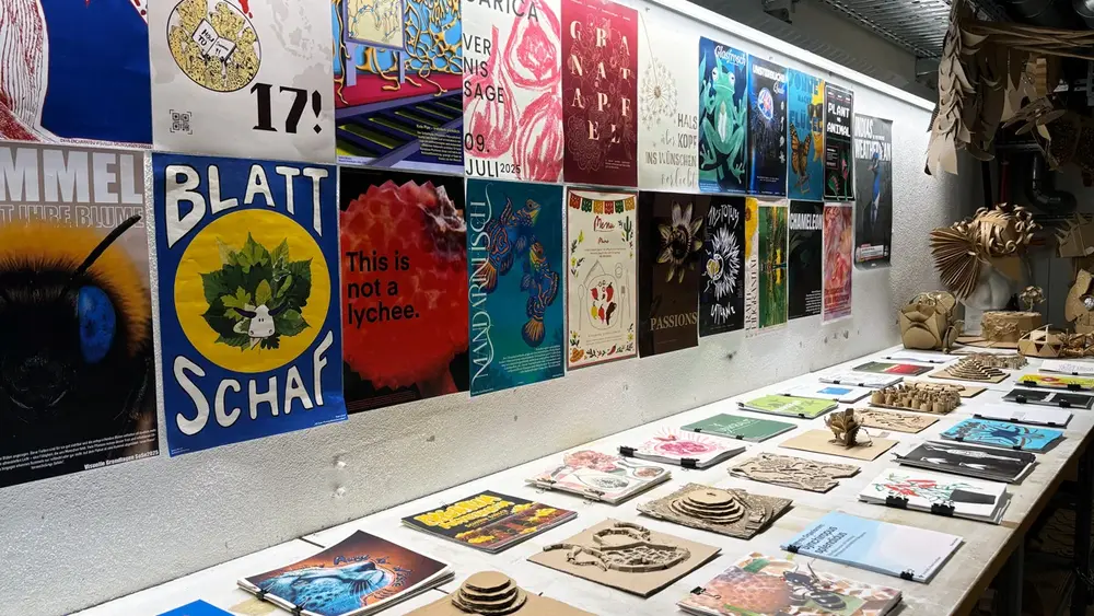 44 Bachelorarbeiten, neun Masterarbeiten und einige Semesterprojekte zeigten die Kommunikationsdesign-Studierenden diesmal. Julia Baumgarten stellte ihre Arbeit „emolation“ vor, eine Fashion Brand, die eigene Lieblingslieder mittels generativem Design zum Beispiel in individuelle Häkelmuster für Schals übersetzt. Um Musik drehte sich auch die Masterarbeit von Laurenz Strasser: Der Kommunikationsdesigner konstruierte eine physische 3-D-Installation, um – in Kombination mit visueller 2-D-Grafik – Musik visuell erfahrbar zu machen. Mit ihrem Projekt „RIQO“ hat Jule Langolf wiederum eine Schriftart entwickelt, die Texte für Menschen mit Einschränkungen besser lesbar macht.