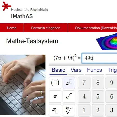 IMathAS ist ein webbasiertes System für Mathematikaufgaben und Kursverwaltung der Hochschule RheinMain. Das System wurde für verschiedene Formen von umfangreichen Mathematikaufgaben entworfen. Ein spezielles Eingabefeld erlaubt die Eingabe von Formeln und Zeichen per Mausklick. Tests können durch eine Schnittstelle über ILIAS oder Stud.IP zur verfügung gestellt werden.