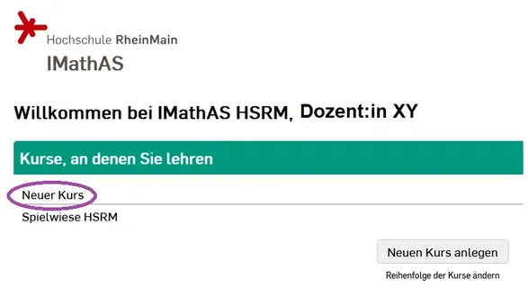 Studierende der Hochschule RheinMain gelangen ausschließlich über die hochschuleigenen Plattformen ILIAS oder Stud.IP zu den Kursen in IMathAS.