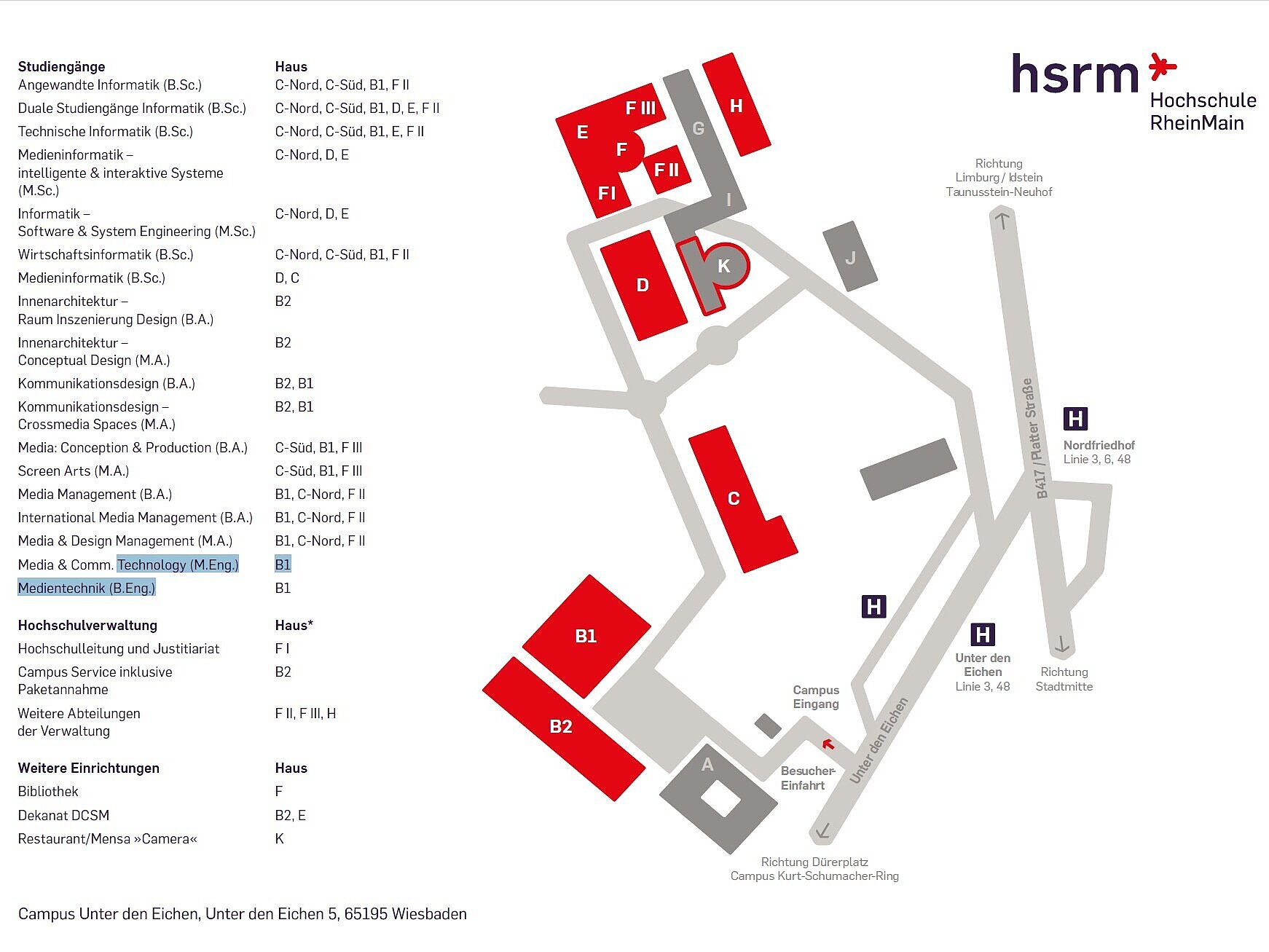 Auf dem Campus Unter den Eichen stehen nach vorheriger Anmeldung für Besucher:innen kostenlose Parkplätze zur Verfügung. Das Parkplatzangebot rund um den Campus ist beschränkt.